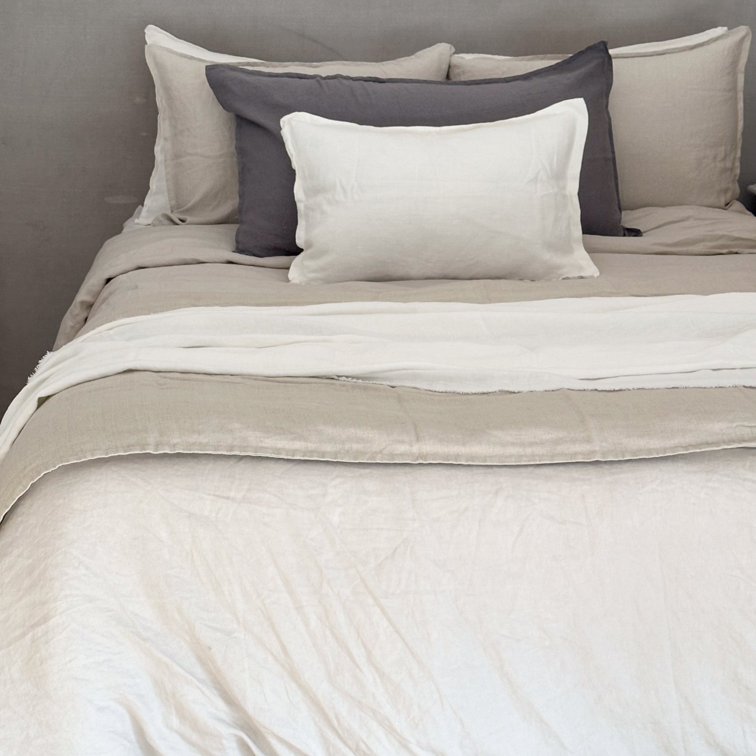Lino: Lino 100%, suave y fino. 175 gsm. Interior: Pluma.