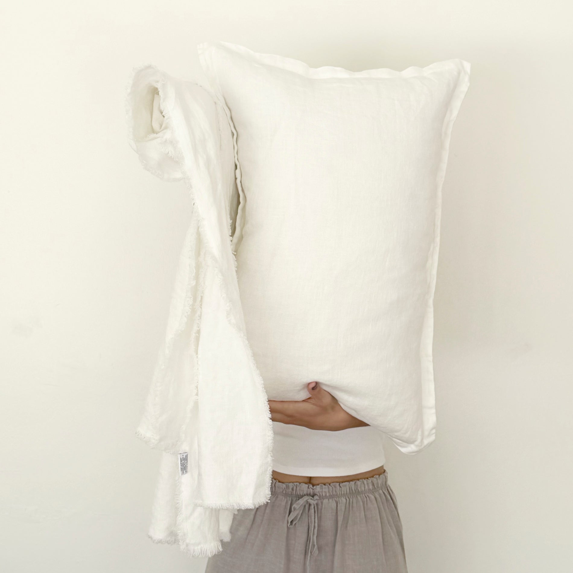 Cojín andes lino grueso blanco (con relleno). 40 x 60 cms.